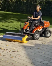 Plænetraktor med en klippebredde på 110 cm og 1,5 mtr. 2 rækket gårdspladsrive