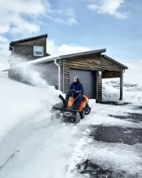 Husqvarna R420TSX AWD er en kompakt, højtydende firehjulstrukket Rider med en kraftfuld Kawasaki V-twin-motor, der nemt håndterer stort, tæt og kuperet terræn. Det unikke XChange-tilbehør giver dig mulighed for hurtigt at skifte tilbehøret uden brug af værktøj. Takket være Bluetooth-tilslutning kan du nemt overvåge din Rider med Husqvarna Connect-app’en. Udstyret med dobbelte LED-lamper, nøglestart, justerbart rat og en praktisk bagagebærer. Husqvarna R420TSX AWD er et fremragende valg til private landejere, sportsanlæg og hoteller med store arealer, som skal vedligeholdes året rundt. Leveres uden dæksel. Ekskl. klippebord. Følgende klippebord passer til maskinen: Combi 103 (967 64 89-01), Combi 112 (967 64 90-01) og Combi 122 (967 64 91-01).